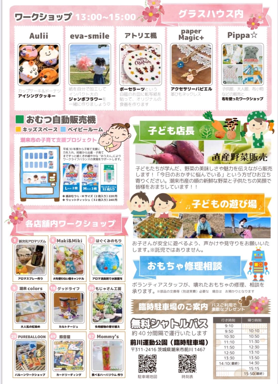 ブースも「キッチンカー・飲食」、「ワークショップ」、「ハンドメイド・雑貨」、「美容・癒し」